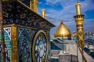 عثمانی دور حکومت میں حرم پر ہونے والے حملے کے نتیجہ میں یہ گھڑی خراب ہو گئی تھی۔ اسی طرح صدامی دورِحکومت میں بھی 1991 میں صدام ملعون کی حکومت کی طرف سے بھاری توپ خانے اور ٹینکوں کے ذریعے حرم پر بمباری کی گئی جس سے حرم کی عمارت کو کافی نقصان پہنچا اور گنبد کا بھی ایک حصہ منہدم ہو گیا اور اس بمباری سے گھڑی والا مینار بھی محفوظ نہ رہ سکا اور جس سے یہ تاریخی گھڑی اپنے بہت سے پرزے کھو بیٹھی اور صدام ملعون کی حکومت کے خاتمے کے بعد حرم کے نئے ادارے کے انجینیئروں نے مومنین کے تعاون سے اس گھڑی کو دوبارہ صحیح کیا اور اب تک یہ گھڑی کام کر رہی ہے۔