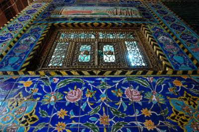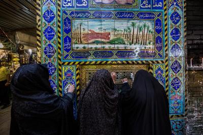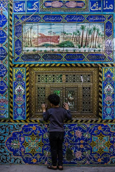 اس تصویر کے اوپر ایک اور تصویر بنی ہوئی ہے کہ جس میں دو کٹے ہوئے ہاتھ آمنے سامنے دکھائی دے رہے ہیں اور ان ہاتھوں کے دائیں طرف لکھا ہوا ہے(ھذا مقام) اور بائیں طرف لکھا ہوا ہے (کف العباس علیہ السلام )اور اس سے اوپر کربلائی کاشی پر وہ اشعار لکھے ہوئے ہیں کہ جن کو حضرت عباس علیہ السلام نے دریائے فرات کے پاس ارشاد فرمایا تھا :