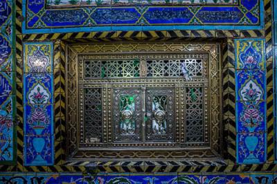 اس دیوار میں ایک تانبے کی ضریح نما کھڑکی بنی ہوئی ہے اور اس ضریح نما کھڑکی کے چاروں طرف کربلائی کاشی لگی ہوئی ہے اس کھڑکی کے دائیں جانب والے نچلے حصے پر اس کھڑکی کے بنائے جانے کی تاریخ 1394ہجری 1974عیسوی لکھی ہوئی ہے اور بائیں طرف والے حصے پر نیچے اس کھڑکی کے بنانے والے کا نام ان الفاظ میں لکھا ہوا ہے (عمل جعفر داؤد السباک)اس کھڑکی کے اوپر کربلائی کاشی پر ایک کٹے ہوئے ہاتھ کی رمزی تصویر بنی ہوئی ہے اور اس تصویر میں ہاتھ کے دونوں طرف کھجوروں کے درخت بنے ہوئے ہیں۔