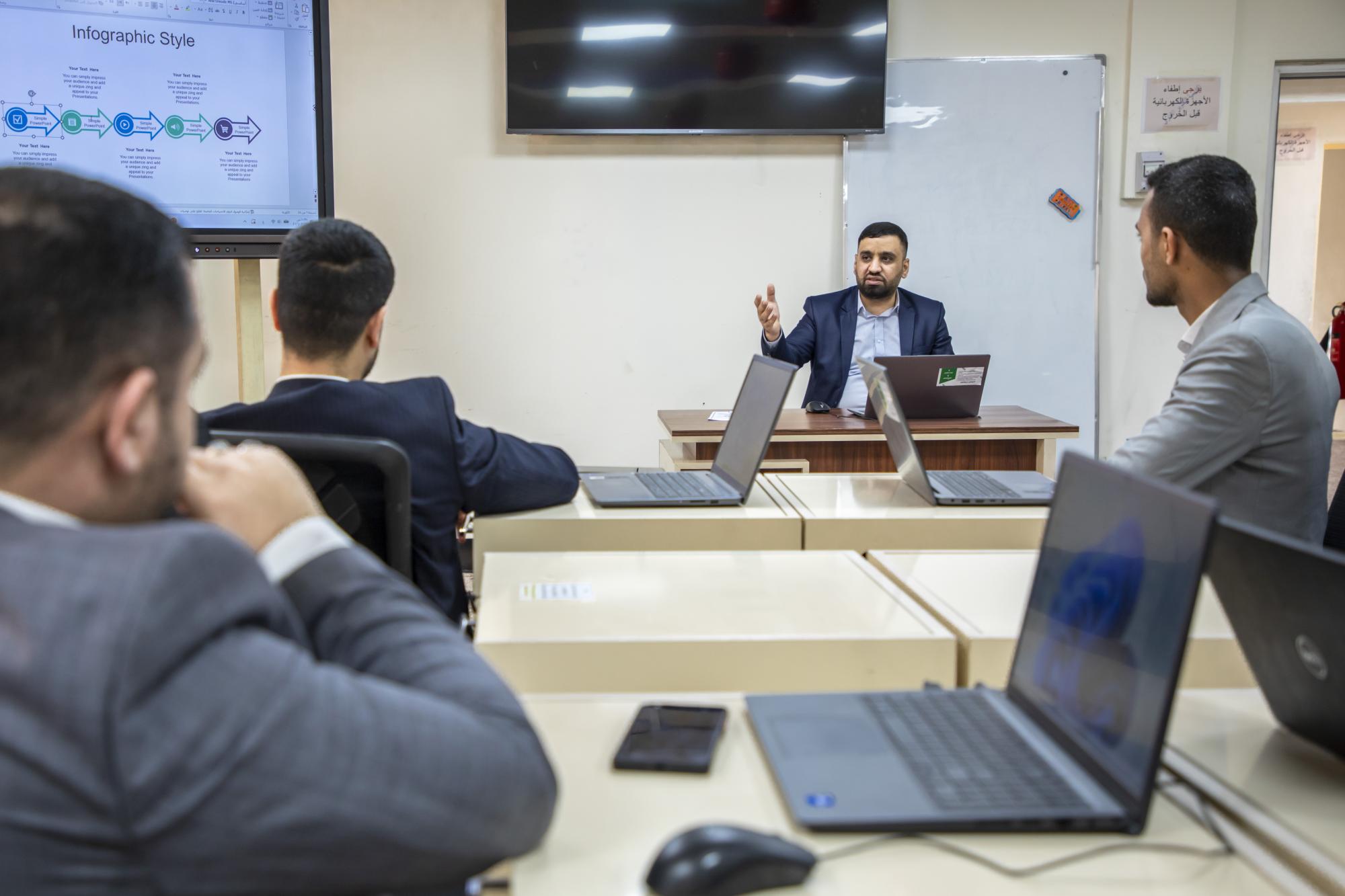 وأضاف أنّ "الورشة تضمنت محاور متعددة، منها: مبادئ التصميم البصري، واستخدام القوالب الجاهزة في برنامج البور بوينت، وآليات تنسيق الألوان والخطوط، فضلاً عن تطبيقات عملية لتصميم حقائب احترافية تلبي احتياجات بيئات العمل الحديثة".