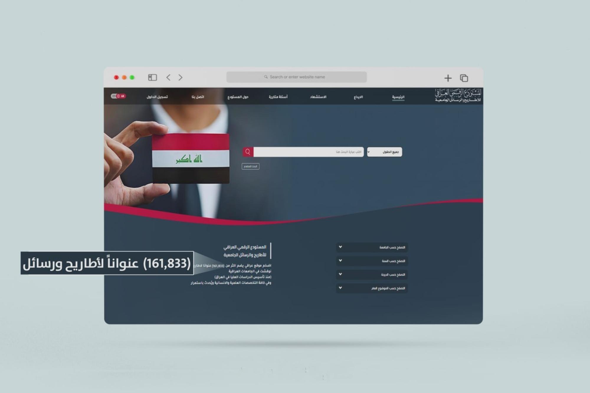 وقال معاون مدير المركز، السيد صالح الحسناوي: إنّ "المستودع الرقمي يضم 161,833 رسالة وأطروحة جامعية، ويجري تحديثه بشكل مستمر، لمواكبة النشاط العلمي في المؤسّسات التعليمية العراقية".