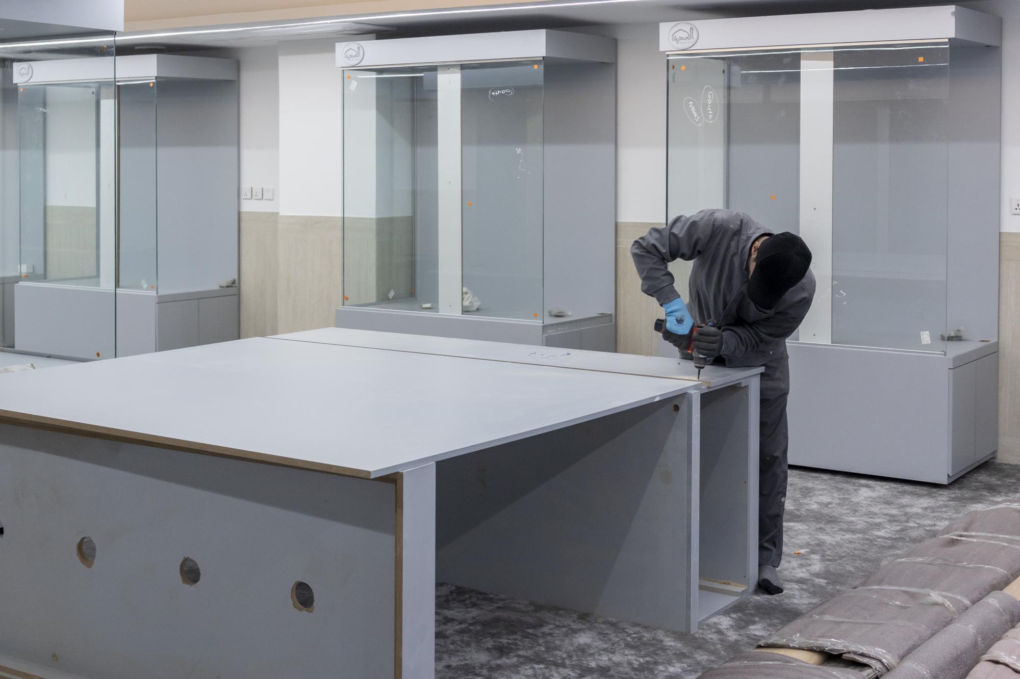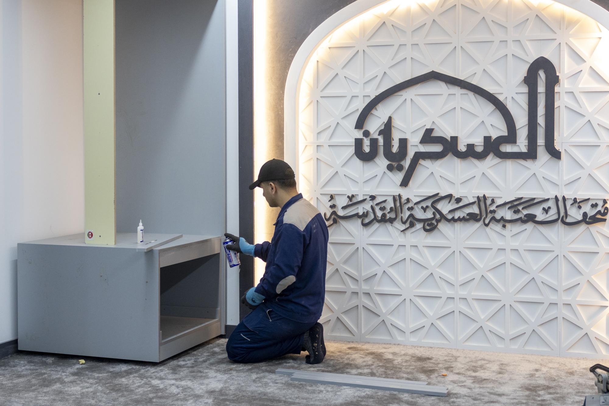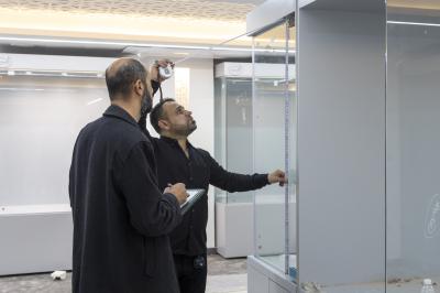 يواصل متحف الكفيل للنفائس والمخطوطات في العتبة العباسية المقدسة أعمال تركيب عارضات مقتنيات متحف العتبة العسكرية المقدسة.
