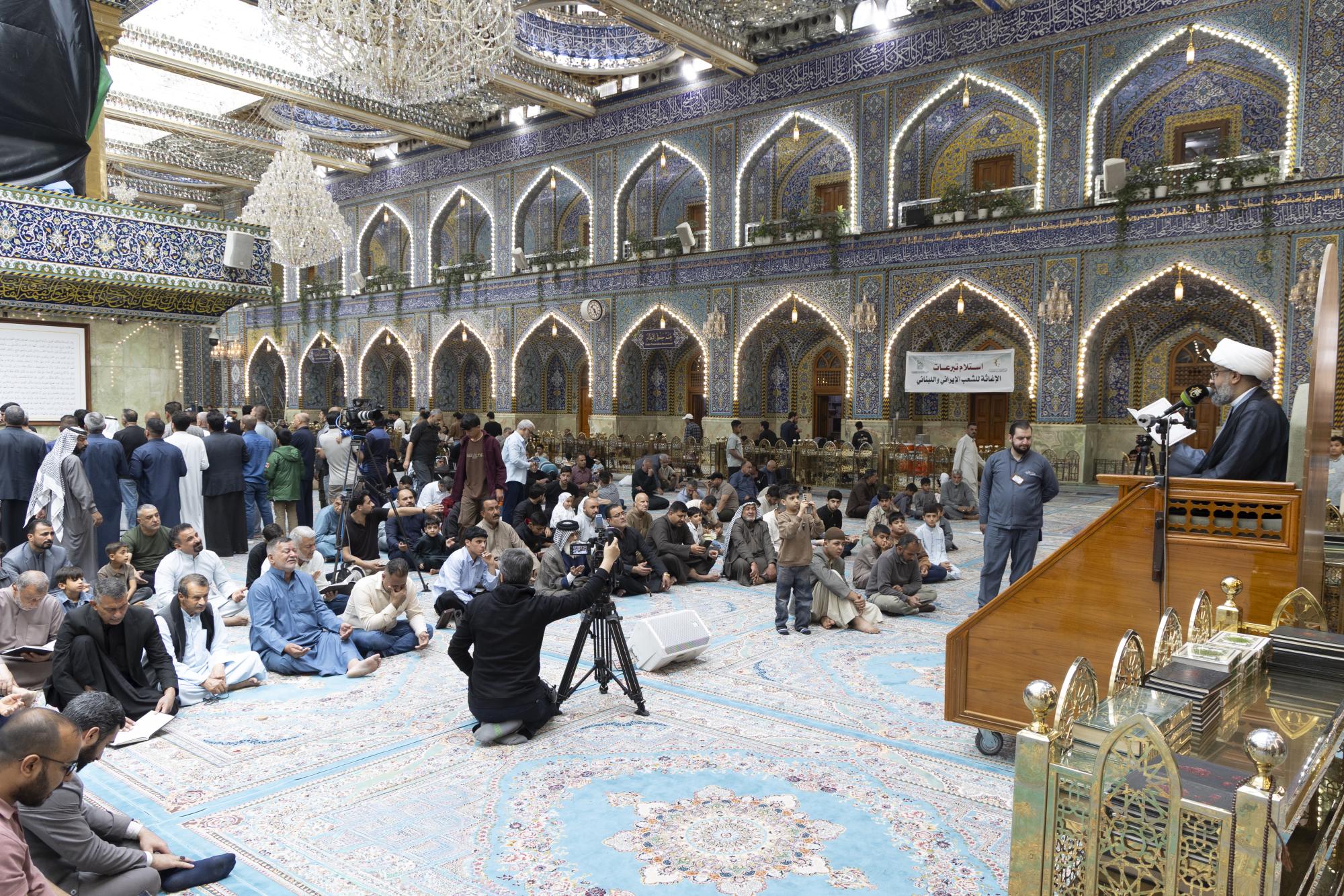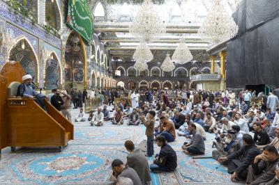 The staff of the Al-Abbas's (p) Holy Shrine prepare the appropriate atmosphere for reading the supplication by providing prayer books, organizing worship areas, and offering necessary services to the visitors.