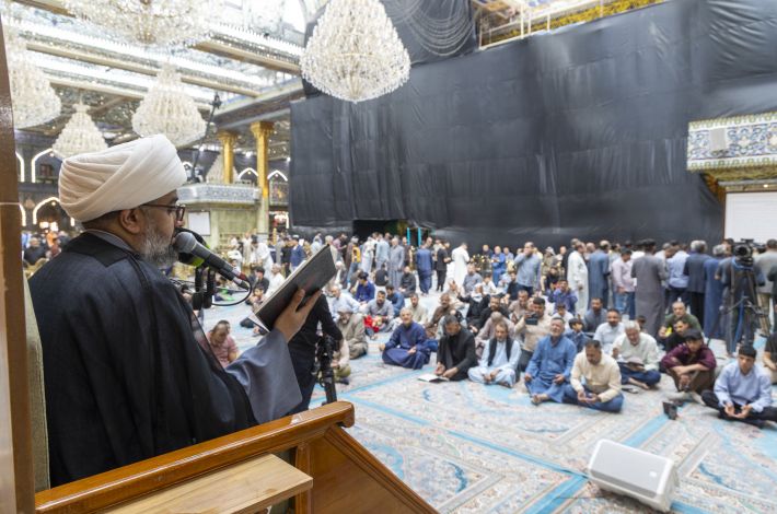 The prayer recitation ceremony was performed in a worshipful and spiritual atmosphere, with the participation of a group of visitors to Imam al-Hussayn and his brother Aba al-Fadl al-Abbas (peace be upon them).