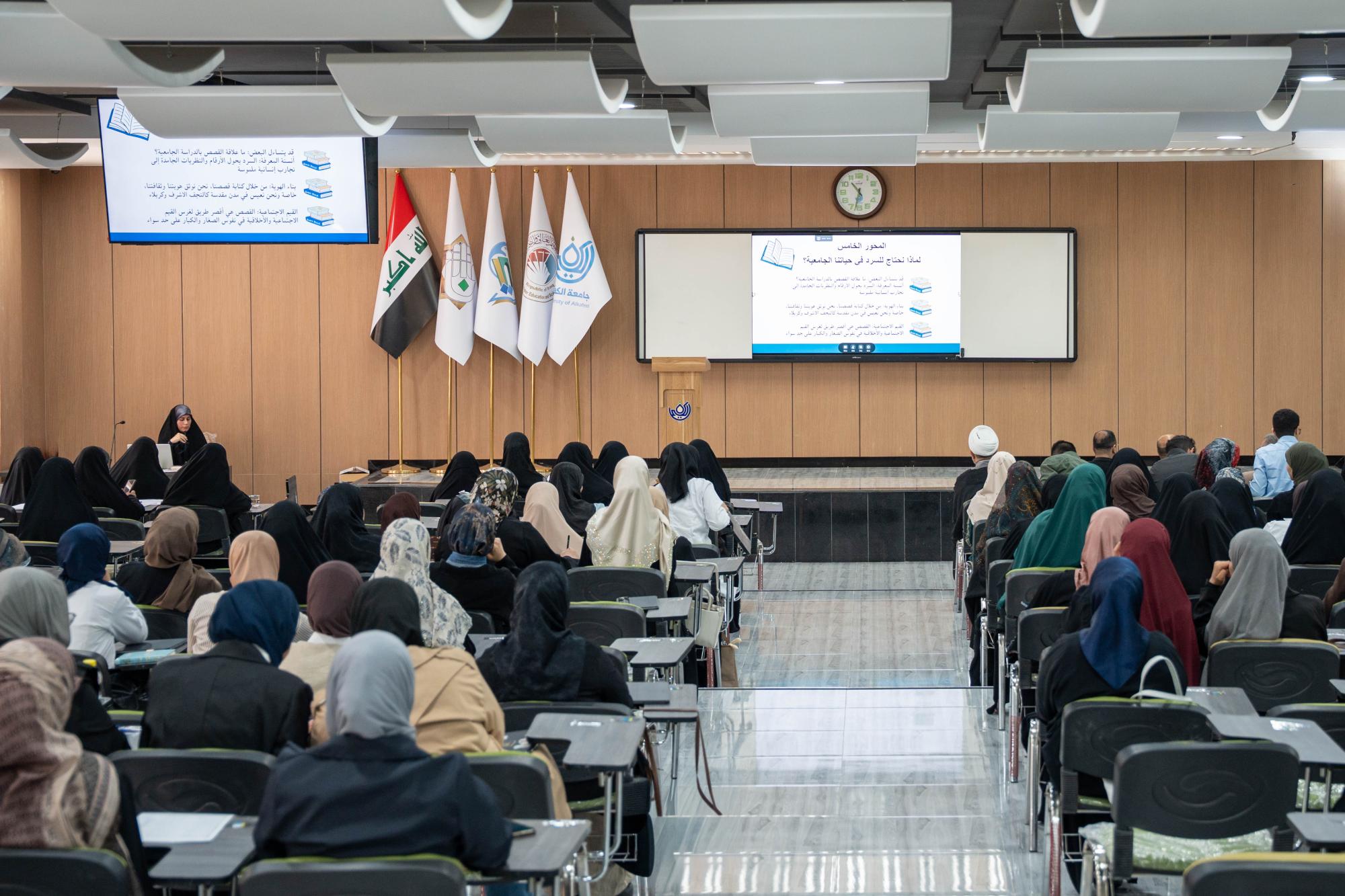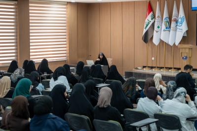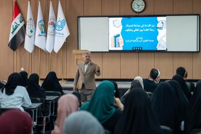 وقدّمت الورشةَ المدرّسُ المساعد رقية محمد صادق من جامعة كربلاء المقدّسة، التي تناولت فيها أهمّية القراءة والكتابة بوصفهما ركيزتَينِ أساسيّتَينِ في بناء الوعي الثقافي والمعرفي، فضلًا عن دورهما في تنمية المهارات الإبداعية لدى الطلبة.
