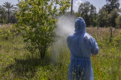وأضاف، أنّ "أكثر الإصابات التي تتعرض لها النباتات هي الفطرية والحشرية، إذ تكافح الإصابات الحشرية عبر الرش المباشر للمبيدات على مواضع الإصابة، فيما تكافح الفطرية بطريقتين؛ الأولى عبر الرش، والثانية عبر السقي بمحاليل علاجية تضاف إلى الماء".