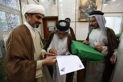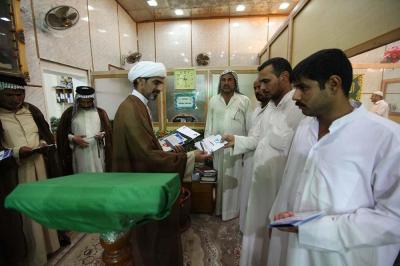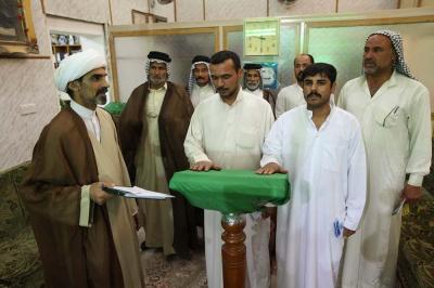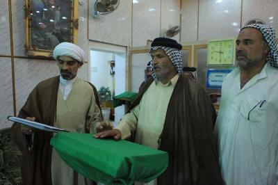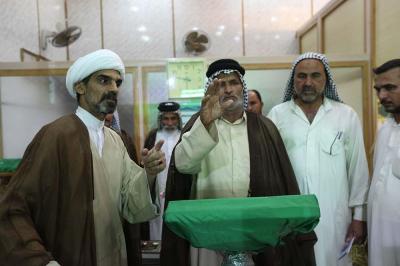 مبيّناً: "اليمين الذي نعقده هنا يكون بثلاث ذوات عظيمة، فيكون الحلف أوّلاً بالله تعالى، وبعدها بكتاب الله تعالى القرآن الكريم، ثمّ بأبي الفضل العباس(عليه السلام)، وتكون صيغة اليمين كالآتي: (أقسم بالله العظيم وبالقرآن الكريم وبحقّ ابي الفضل العباس(عليه السلام) أن أقول الحقّ، إنّي بريءٌ من كذا وكذا تجاه المقابل)، وقد وصل عددُ محاضر اليمين منذ عام (2004م) حتّى يومنا هذا نحو (24,500) محضر، ونحن في الحقيقة مستمرّون بهذا العمل من أجل خلق حالةٍ من التعايش السلمي وتصفية نفوس المتخاصمين، كما عقدنا مؤتمراً عشائريّاً في قضاء المجرّ الكبير في محافظة ميسان وهو الثاني من نوعه، وقد بيّنّا من خلاله بعض القضايا العشائرية والخلافات التي تحدث وحاولنا قدر الإمكان أن نحدّ من هذه القضايا التي تؤدّي الى اليمين أحياناً، لذلك نحاول أن نحثّ المؤمنين دائماً بالرجوع الى المراجع ووكلائهم وربط قضية اليمين بالجانب الشرعيّ".