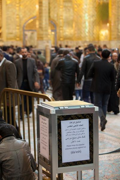 Some of the visitors have donated their time, standing every Friday's eve near one of these funds to encourage the visitors of Aba Al-Fadl Al-Abbas (peace be upon him ) to donate by reminding them that thanks to those fighters, they can perform their Ziyarat in peace.