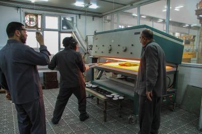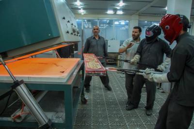 This operation goes through multiple phases, as after the manufacture of the written bands that were made of copper metal, enamel was put on it then placed in thermal ovens specially prepared for this purpose, with temperatures up to more than 1000 degrees Celsius in some cases, in line with the thickness of each piece and the amount of paint on it. Then they are cleaned of impurities to cover it with gold paint according to certain proportions, to put them in an artistic way, making each piece a exquisite piece of art that is very homogeneous in terms of colors.