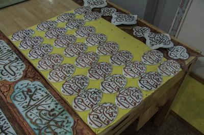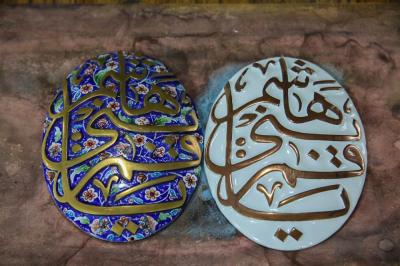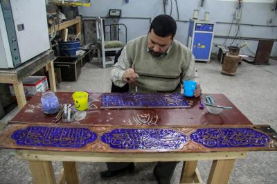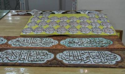 After the completion of the manufacture of these written bands (the Quranic and the poetic bands), the painting works with enamel and gold have started and the carvings and writings are implemented in an accurate and perfect way to turn the drawn lines and the inscriptions to components of plastic arts in order to bring out into light the final image, which requires high-precision skills to not hinder other decorations.