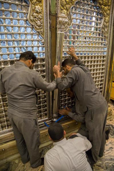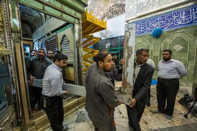 تواصلُ الملاكاتُ الفنية العاملة في مصنع العتبة العباسيّة المقدّسة لإنتاج شبابيك الأضرحة والمزارات الشريفة والجهات الساندة معها أعمالَها الخاصّة بتفكيك الشبّاك القديم لضريح أبي الفضل العباس(عليه السلام) تبعاً لخطّةٍ زمنيّة تمّ وضعُها مسبقاً، ونُفّذت تباعاً مع المحافظة على كلّ قطعةٍ أو جزءٍ من أيّ ضررٍ قد يصيبها أثناء أعمال التفكيك.