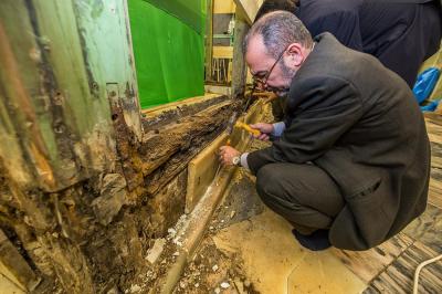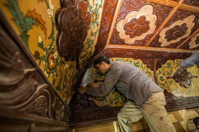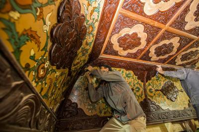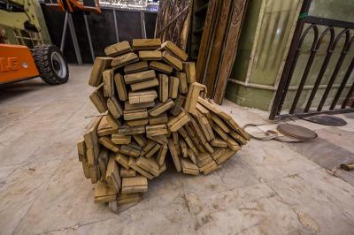 The works started by dismantling the upper parts after being strengthened by wooden pillars to protect it from any damage, and to allow the workers to complete the disassembly works without any risk, as the damage proportion of the wooden structure has been very high, and other matters have been observed, such as: