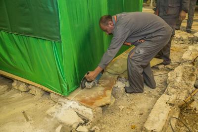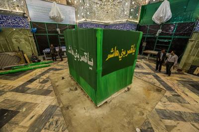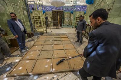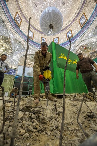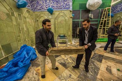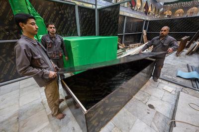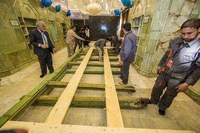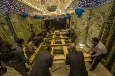 الثانية: عمل قاطع خشبي لصندوق القبر الشريف للمحافظة عليه من أيّ ضرر أو تلف نتيجة هذه الأعمال.