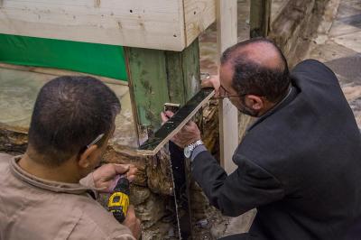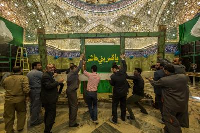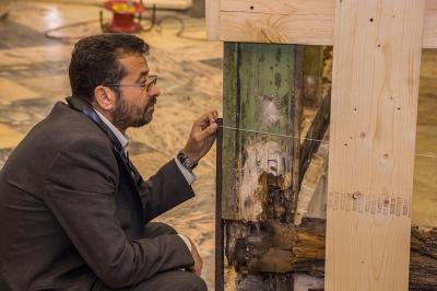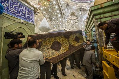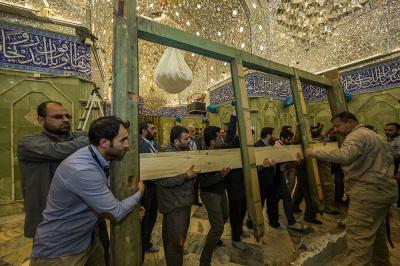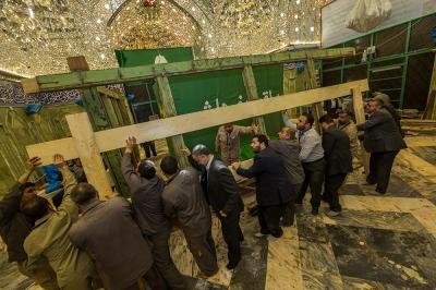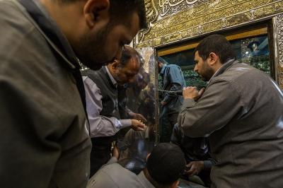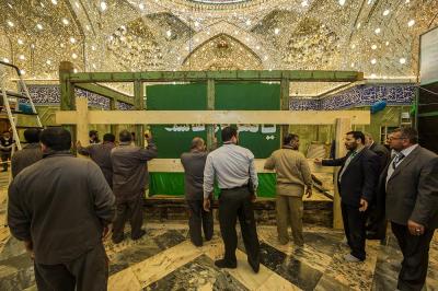الثالثة: تفكيك الأجزاء المعدنية المركّبة على الهيكل الخشبي حسب كلّ قطعة، مع الأخذ بنظر الاعتبار المحافظة عليها من أيّ ضرر قد يحصل نتيجة أعمال التفكيك لكون أنّ الأجزاء قديمة وبعضها متآكل، فضلاً عن طريقة تركيبها البدائية فهي مثبّتة بقوّة بواسطة مسامير خاصّة، ليتمّ بعدها ترقيمُها بكودات رقميّة خاصّة بحسب كلّ قطعة، بعدها تغلّف بشرائط بلاستيكية وقطعة قماشية وتوضع داخل صناديق صُنعت وفقاً لقياس كلّ جزءٍ وقطعة ويوضع رقم وكود آخر على الصندوق ليتمّ نقلها بعد ذلك الى مخازن العتبة المقدّسة.