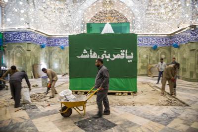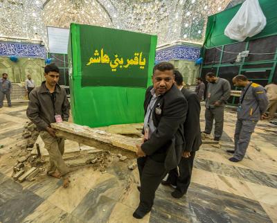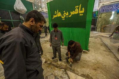 الأولى: عمل قواطع داخلية وخارجية وعمل شبابيك مؤقّتة لغرض المحافظة على انسيابية حركة الزائرين للمرقد الشريف وإتمام الأعمال داخل هذه القواطع.