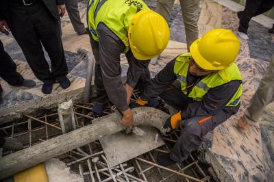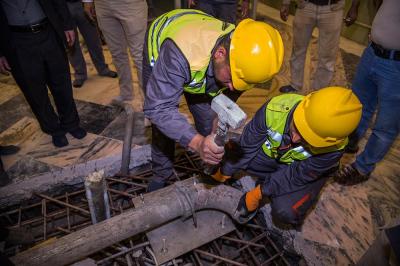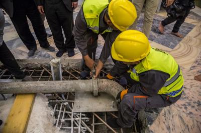 در کنار اجرای فونداسیون، مرمر قدیمی پیرامون ضریح مطهر برداشته شده و مرمر جدید به زودی اجرا خواهد شد.