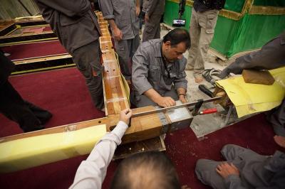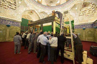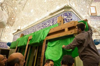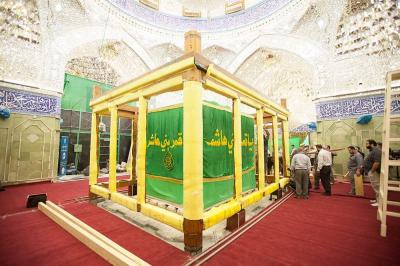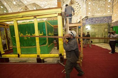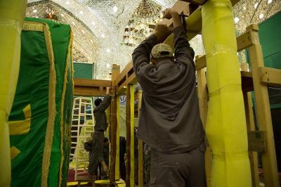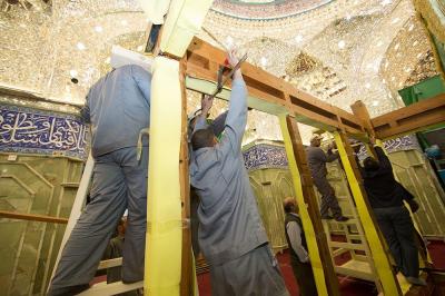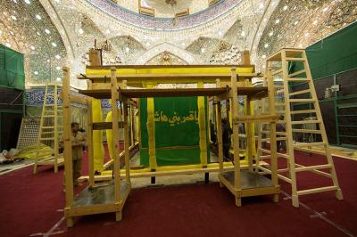 نصب سازه چوبی ضریح جدید تحت نظر واحد نجاری در قسمت پروژه های مهندسی حرم مطهر به عنوان متولی ساخت این سازه آغاز گردیده و دست اندرکاران این بخش با دقت در حال مونتاژ این سازه بر روی فونداسیون آن هستند. تمامی مراحل مونتاژ سازه چوبی یکبار در کارگاه ضریح سازی و قبل از انتقال به حرم مطهر انجام شده است.