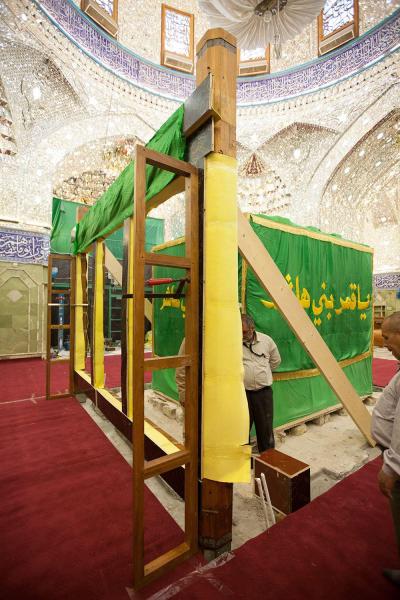 پس از انتقال ضریح جدید به حرم مطهر و اتمام مراحل مختلف برداشتن ضریح قدیمی حضرت عباس علیه السلام و اجرای فونداسیون جدید و همچنین بازسازی مرمر کف حرم مطهر، مراحل نصب سازه چوبی ضریح جدید آغاز گردید.