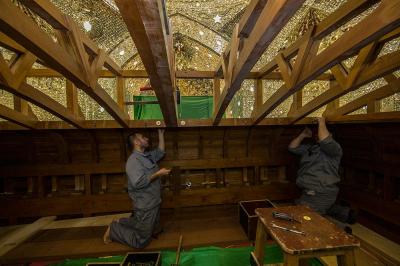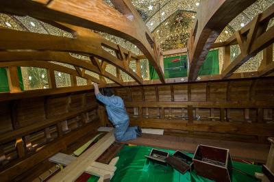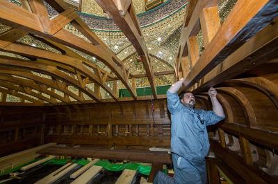 تتواصل الأعمال في نصب وتركيب الهيكل الخشبيّ لضريح أبي الفضل العباس(عليه السلام) وهذه الأعمال تحتاج الى دقّة من حيث تركيب كلّ قطعة وجزء من هذا الهيكل، لكون أنّه الأساس الذي سوف تُركّب عليه جميع قطع الشبّاك الأخرى، لذا فقد أخذت اللّجنةُ المشرفة على صناعة شبّاك ضريح أبي الفضل العباس(عليه السلام) كافة الاحتياطات والتدابير اللّازمة الفنية والهندسية.