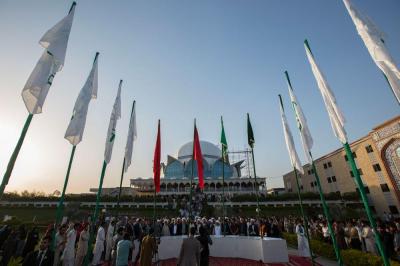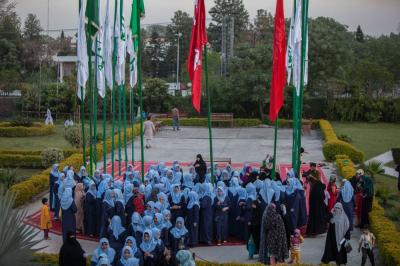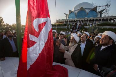 Coinciding with the birth anniversary of the Immaculate Lady Fatima Az-Zahra (peace be upon her), today wednesday 20th Jumada Al-Thanya corresponding to the 30th March, 2016, the flags of shrines of Aba Abdillah Al-Hussayn, his brother Aba Al-Fadl Al-Abbas, Imam Ali and Imam Al-Kadhem and Imam Al-Jawad (peace be upon them), were raised in the sky of the Pakistani capital; Islamabad.
