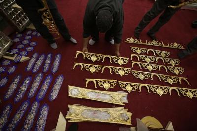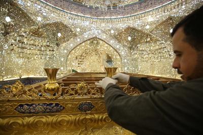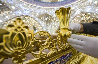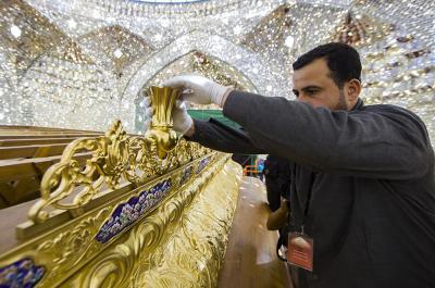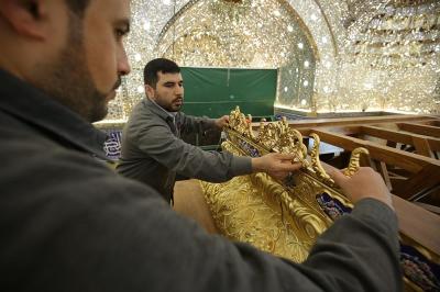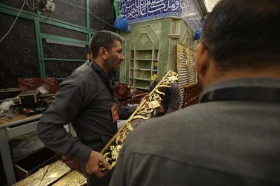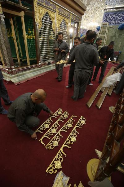 It is to mention that the new grid of the shrine of the Master Aba Al-Fadl Al-Abbas (peace be upon him) was manufactured in the workshops of the crafts' factory belonging to the Al-Abbas's (p) Holy Shrine with high quality, durability and accuracy. In fact it is the first grid which is entirely manufactured in Iraq with Iraqi handicrafts-men. It is also characterized by the originality of its engravings and decorations in addition to the fact that it keeps the same overall structure and engravings of the old one, with few additions, upgrades and modifications, because of its uniqueness design comparing to the grids of the holy shrines in Iraq and in the Islamic world.