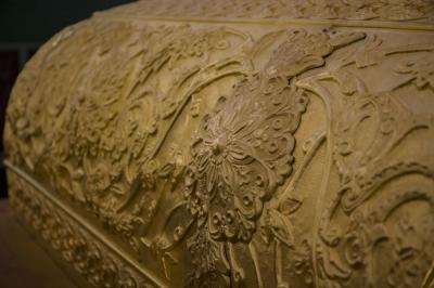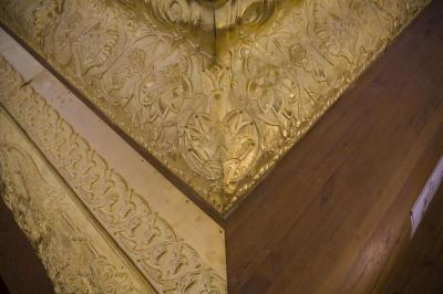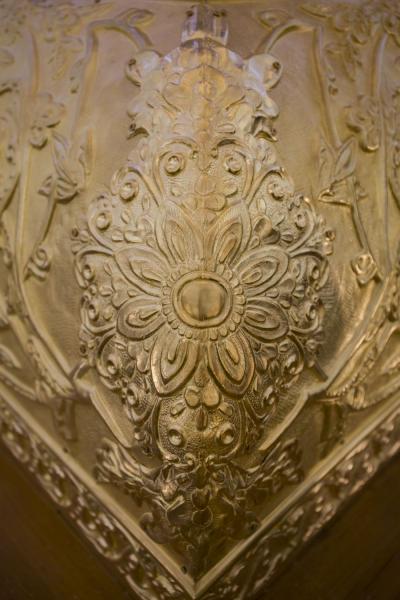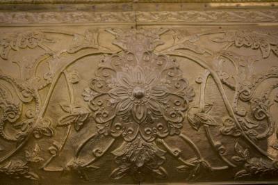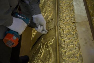 مرّت هذه القطع بعدّة عمليات بدءً من الطرق واستخلاص النقوش، وصولاً إلى الأعمال النهائية التي تُختتم بطلائها بالذهب الخالص، وباستخدام طرقٍ طلائية حديثة أكسبته رونقاً وجمالاً، ليعطيها لوناً ذهبيّاً متناسقاً مع باقي الأجزاء الذهبيّة في الشبّاك.