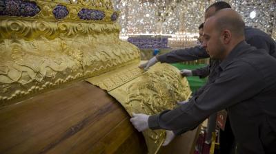 بوتيرةِ عملٍ متصاعدة وقلوبٍ ولائيّة صادقة ومشاعر يحدوها الشّوق لخِدْمة المولى أبي الفضل العبّاس(عليه السلام) تشهد الأعمال الخاصّة بتركيب أجزاء وقطع الشبّاك الجديد لضريح أبي الفضل العبّاس(عليه السلام) تقدّماً واضحاً وملموساً، فبنفس الهمّة التي صُنِّعت القطع والأجزاء بها تتمّ أعمال التركيب النهائية، العاملون في هذا المشروع الكبير والمبارك الذين تحدّوا فيه كلّ من شكّك في قدرات العقول العراقية شمّروا عن سواعدهم وسخّروا جميع طاقاتهم وإمكانياتهم الفنية والجسدية من أجل الانتهاء من تركيبه وإقرار عيون المحبّين والموالين بنصبه، وذلك يوم ميلاد أبيه الإمام علي(سلام الله عليه) في (13رجب 1437هـ)، مستمدّين قوّتهم وعزيمتهم هذه من صاحب الشبّاك الشريف لتكون نبراساً يستنيرون به وعاملاً معنويّاً وروحيّاً يستقون منه على تثبيت ما تمّ تطويعه من المعادن والخشب.