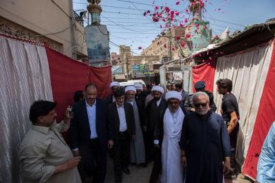 پاکستان کے شہر حیدرآباد میں قدم گاہ مولا علی علیہ السلام کے مقام پہ روضہ مبارک حضرت عباس علیہ السلام کے عَلَمْ کی پرچم کشائی کی تقریب منعقد ہوئی کہ جس میں مومنین کی بہت بڑی تعداد نے شرکت کی اور حضرت عباس علیہ السلام سے اپنی عقیدت کا پُر جوش انداز میں اظہار کیا۔
