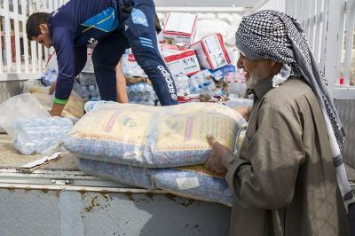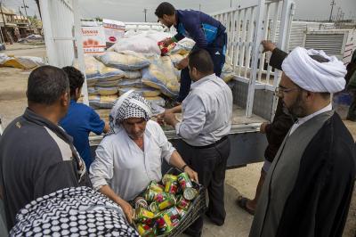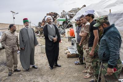 Stating: "The visit has included the military units stationed on the outskirts of Al-Fallujah and the area of Abu Ghraib, who were blessed by the Almighty God by being in the fields of Jihad. We have provided them with some logistical assistance, and we have succeeded to visit the brothers in the Al-Musayyab area, specifically the faithful working in the Procession of Hamza Al-Gharbi to provide the support such as food to the Mujahideen stationed in Jurf Al-Nasr. As we are used that the religious authority always directs its attention to the brothers the Mujahideen, providing them with the support at various level, especially those who are stationed in the battlefields as they have significant impact."