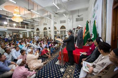 مسجد عسکری(ع) میں منعقد ہونے والی جشن امیر المومنین(ع) کی افتتاحی تقریب میں عراق کے مقدس روضوں کے وفود کے علاوہ ہندوستان کے مختلف شہروں سے تعلق رکھنے والے مومنین اور علمی و سماجی شخصیات کی بڑی تعداد نے شرکت کی۔