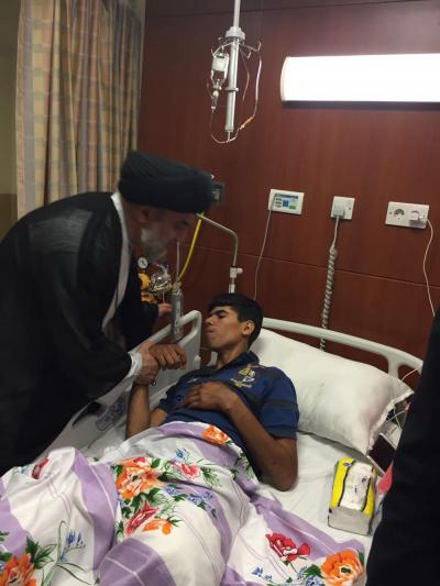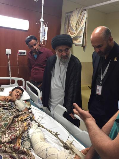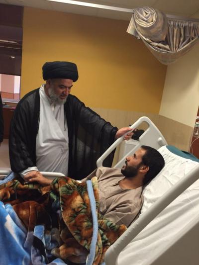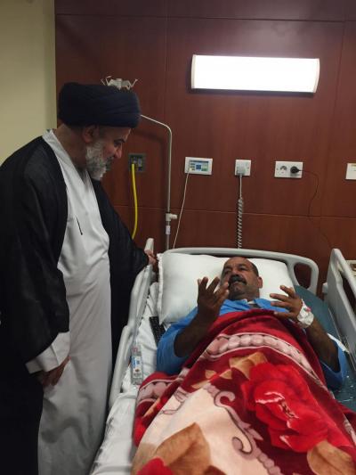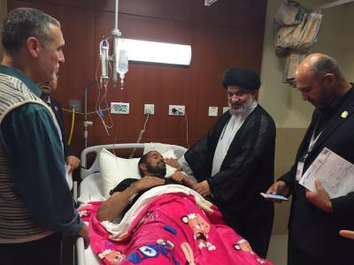خلال جولةٍ ميدانيّة له تفقّد سماحة المتولّي الشرعي للعتبة العبّاسية المقدّسة السيد أحمد الصافي(دام عزّه) جرحى أبطال الحشد الشعبي الراقدين في مستشفى الكفيل التخصّصي من مجاهدي فرقة العبّاس(عليه السلام) القتالية وبقيّة فصائل المقاومة ممّن أصيبوا في معارك تحرير قرية البشير وجبال مكحول، حيث اطّلع سماحته على الحالة الصحّية للمقاتلين الأبطال وسير تلقّيهم العلاج والخدمات المقدّمة لهم، مُثْنِياً على بطولاتهم وانتصاراتهم التي حقّقوها في حربهم ضدّ العصابات الإرهابية في كافّة قواطع العمليات العسكريّة وتلبيتهم نداء المرجعية الدينيّة العُليا للدفاع عن أرض العراق وشعبه ومقدّساته، مُشيداً بالرّوح والمعنويّة العالية للجرحى الذين يُسابقون الزمن للشفاء من أجل العودة لساحات القتال.