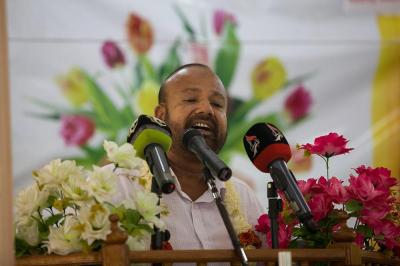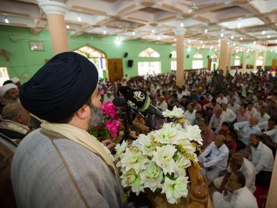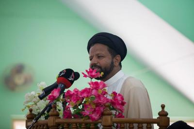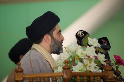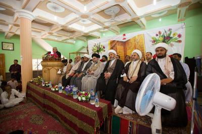 جاء فيها: "من دواعي السرور والغبطة أن نلتقي بهذه الوجوه الولائية المُحبّة لعليّ(عليه السلام) والسائرة على نهجه القويم، فحباها الله أن كرّمها وجعل أغلب أهلها من أحفاد وسلالة النبوّة وهو نسل الإمام السجّاد(عليه السلام)، أودّ أن أنقل لكم سلام القائمين على العتبات