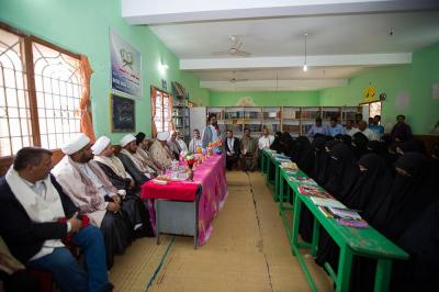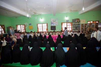 استُقبِلَ الوفد استقبالاً حارّاً من قبل أهالي القرية الذين تجمّعوا في أكبر حسينيّة فيها وهي (دار الزهراء -عليها السلام-) التي تضمّ مدارس دينيّة فضلاً عن مصلّى كبير، عواطفهم كانت جيّاشة تراها في وجوههم، وقد ارتسمت عليها مشاعر البهجة والفرح بوصول وفد العتبات المقدّسة.استُهِلَّت الزيارة بقيام الوفود بجولة لمدرسة بيت الهدى (دار القرآن) النسوية حيث قام السيد مضر القزويني عضو وفد العتبة العبّاسة المقدّسة بإلقاء كلمةٍ مختصرة على طالبات المدرسة، حاثّاً إيّاهنّ على بذل المزيد من الجهد في تحصيل العلوم الدينية ومنها العلوم القرآنية، وأن يقتدين بالسيدة خديجة الكبرى(سلام الله عليها)، كيف قامت بمساعدة الرسول(صلىالله عليه وآله وسلم) وكيف ساهمت بنشر الدعوة الإسلامية ووقفت بجانبه وآزرته وشدّت من عزيمته.لينتقل الوفد بعدها لأداء الصلاة في حسينية (دار الزهراء -عليها السلام-)
