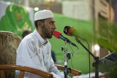 انطلاقاً من قول الرسول(صلى الله عليه وآله وسلم): (حَمَلَةُ القرآن في الدنيا عرفاء أهل الجنة يوم القيامة) اختُتِمَت فعاليات اليوم الثالث من مهرجان ربيع الشهادة الثقافيّ العالمي الثاني عشر بأمسية قرآنية مباركة أُقيمت في الساحة المُطلّة على باب قبلة صحن أبي الفضل العبّاس(عليه السلام) وقد جاءت متزامنةً مع ذكرى مولده العطرة.