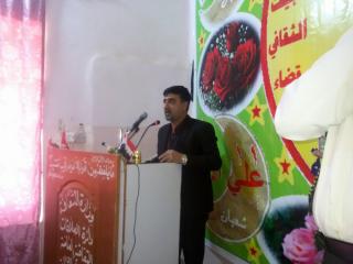در ادامه این جشنواره آقای سید عبدالرزاق الیاسری رئیس فرهنگسرای الهندیه در سخنانی ولادت انوار علوی ماه شعبان را که با پیروزی های رزمندگان و مجاهدان عراقی در نبرد با تکفیریون داعشی متزامن گردیده است را به همگان تبریک گفت و از حمایتهای آستان مقدس عباسی برای برگزاری این جشنواره تقدیر و تشکر نمود.