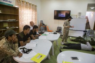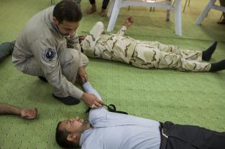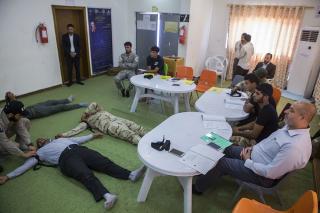 de son côté, le formateur M, Mortada al-Ghalibi précise que : « la séance durera cinq jours centrée sur la maîtrise des premiers soins et les gestes de secours militaires, les cours se divisent en deux parties, théoriques et la pratique. Nous espérons pouvoir former davantage des membres ainsi que les combattants des forces militaires, et les forces populaires, . »