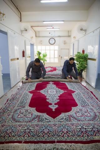 Uluslararası El-Kefîl Ağı Halılar Şubesi Sorumlusu Firas Abduzzehra’dan yapılan çalışmalar hakkında bilgi aldı: “Bildiğiniz gibi halılar Mukaddes Türbe’de kullanılan temel malzemelerdendir. Çok kullanılan bu madde Mukaddes Türbe’deki ana (tabiri caizse) mobilyadır. Bu yüzden depolama işleminin yapılabilmesi için buna özel bir mahzen inşa edilip başına bu konuda tecrübe ve uzmanlık sahibi kimselerin getirilmesi gerekiyordu. Çünkü Mukaddes Türbe’nin depolarında çalışmak için iki şart var: Tecrübe ve akademik eğitim almış olmak. Tecrübe çalışma esnasında yaşanan sorunların çözülmesine katkıda bulunuyor. Eğitime gelince; biz üniversitede ne öğrendi isek burada onu uygulamaya çalıştık. Allah’a hamdolsun bizler çalışmalardan sorumlu kardeşlerimizi bilgilerini yenileme ve geliştirmeleri için uzmanlık kurslarına yollayarak depolama yönetiminde yaşanan gelişimi yakından takip ediyoruz.”