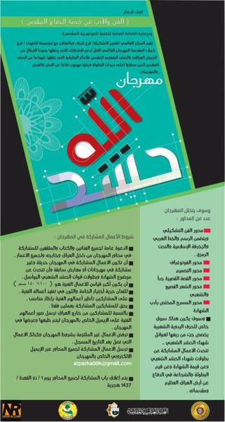 Mukaddes Hz.Abbas (Allah'ın selâmı üzerine olsun) Türbesi sanatçıları ve edebiyatçıları; Irak’ı, halkını ve mukaddes değerlerini müdafaa eden Irak ordusu, güvenlik güçleri ve gönüllülerin kaydettiği zaferleri ve imza attıkları kahramanlıkları desteklemek amacıyla düzenlenecek olan I. Uluslararası Haşdullah Festivali’ne katılmaya davet ediyor. Irak’taki Uluslararası Güzel Sanatlar Merkezi Kerbelâ Şubesi ve Şuhedâ Müessesesi Kerbelâ Şubesi işbirliği ve Mukaddes Türbe’nin katkıları ile düzenlenen organizasyonda Irak’ı, halkını ve mukaddes değerlerini tekfirci DAİŞ (DAEŞ,IŞİD) teröristlerine karşı müdafaa eden yiğitlerin kaydettiği zaferler, kahramanlıklar ve cesaretleri aşağıda belirtilen branşlarla ifade edilmeye çalışılacak.