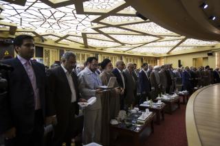 در مراسم افتتاحیه این همایش که از سوی مرکز بین المللی مطالعات و تحقیقات العمید وابسته به آستان مقدس حضرت عباس علیه السلام و با همکاری وزارت آموزش عالی عراق و موسسه سمت از جمهوری اسلامی ایران برگزار گردید، حاضران ثواب قرائت سوره فاتحه را به ارواح طیبه شهدای عراق اهدا نمودند.