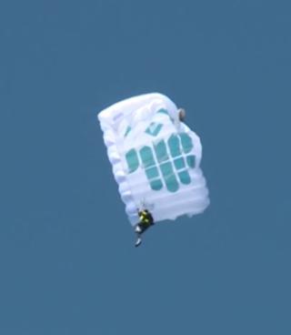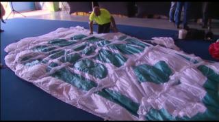 He continued: "The parachute was designed with a length of 2m and width of 3.20m and was manufactured in Russia. Sayed Mohamed Al-Tajer the director of the marketing centre of the Al-Kafeel printing house has contributed in the design of the palm with the help with the designer Hani Al-Sa'idi."