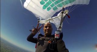 It is to note that Captain Shaker Al-Sa'idi has done several jumps, including the famous parachute jump in the area between the two holy shrines on the occasion of Arba'een of Imam Al-Hussayn (peace be upon him) and in other occasions, as well as bearing the flag of Imam Al-Hussayn (peace be upon him) in Great Britain.