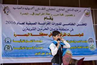 محوطه بین الحرمین الشریفین روز چهارشنبه 10 شهریورماه 1395 مطابق با 27 ذی القعده 1437 هـ.ق شاهد برپائی مراسم اختتامیه دوره های تابستانی آموزش قرآن کریم استان بصره بود. جامعه هدف این دوره های آموزشی را دانش آموزان مدارس استان بصره تشکیل داده بود که توسط موسسات قرآنی مختلف در تابستان سال جاری تحت آموزش قرار گرفتند.