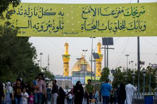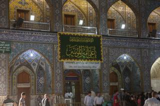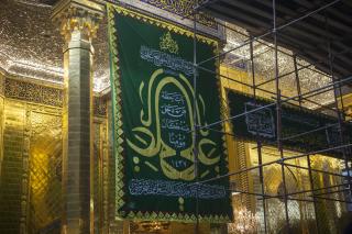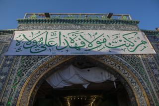On this great occasion, the devotees renew their allegiance to the Commander of the Faithful Ali Ibn Abi Taleb (peace be upon him), who became the Master of every believing man and woman since that moment in which the Holy Prophet (Allah's prayers be upon him and upon his holy Household) the arm of Ali Ibn Abi Taleb (peace be upon both of them) and raised his hand by his hand and declared him in that glorious day the master of Muslims. The holy sanctuary was decorated by holy prophetic narrations and sayings about this occasion, and the beautiful and bright colours adorn the walls of the Al-Abbas's (p) holy shrine from inside to reflect the festive atmosphere of this great occasion.