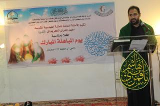 افتُتِح الحفلُ بتلاوة آيات من الذكر الحكيم وكلمةٍ للعتبة العبّاسية المقدّسة ألقاها بالنيابة الشيخ ضياء الدين الزبيدي مدير مركز علوم القرآن وتفسيره وطبعه في العتبة العبّاسية المقدّسة واستهلّها بتقديم الشكر لكلّ مَنْ لبّى هذه الدعوة وحضر هذا المحفل المبارك، مبيّناً أهمّية يوم المباهلة في بيان مقام محمد وآل ومحمد(عليهم السلام) ومنزلتهم العظيمة وكيف أنّ الله عزّوجلّ كرّمهم وكيف بيّن هذه المنزلة والمقام الرفيع من خلال جملةٍ من الكرامات والأحداث ومنها يوم المباهلة، من ثم عرّج الزبيدي الى دور العتبة العبّاسية المقدّسة بإحيائها لمثل هكذا مناسبات تخصّ أئمّة أهل البيت(عليهم السلام) وما قدّمته لمحبّيهم ومواليهم من خلال إقامتها للعديد من المشاريع العمرانية والفكرية ومنها افتتاح فرع معهد القرآن الكريم في لندن، كذلك بيّن بعض إنجازات العتبة المقدّسة القرآنية ومنها طباعتها للمصحف الشريف وسبائك الذهب ومُرشد المعلّم وغيرها بالإضافة الى الدورات والمسابقات القرآنية".
