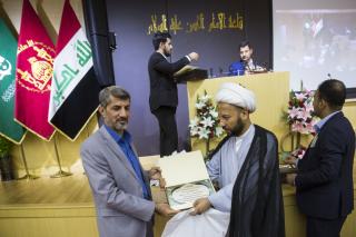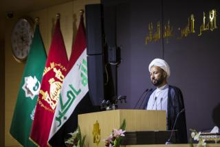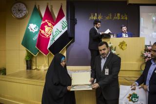 استُهِلَّ حفل الختام بتلاوة آيات من الذكر الحكيم وقراءة سورة الفاتحة ترحّماً على أرواح شهداء العراق، جاءت بعدها كلمة العتبة العبّاسية المقدّسة التي ألقاها الشيخ داخل النوري وجاء فيها: "التعليم هي مهنةُ الأنبياء وحقيقةً أنا في داخلي أغبط المعلّمين والمدرّسين فهي مهنةٌ عظيمةٌ جدّاً، فيقع على عاتق المعلّمين والمدرّسين تنشئة الأجيال، لذلك يجب الإخلاص في العمل مبتغين بذلك وجه الله تعالى، كما يجب على الأستاذ أو المعلّم أن يكون على تواصلٍ تامّ ومستمرّ مع طلبته، يقدّم لهم النصائح والتوجيهات الضرورية في حياتهم ويحثّهم على مواصلة التعلّم وطلب العلم، لأنّ هذا بدروه سيؤدّي الى تحفيز الطالب على التفوّق وحبّ التعلّم ليساهم مستقبلاً في بناء الوطن، فالله سبحانه تعالى قد منحكم العلم وإعطاء درجة منه وزكاة العلم تعليمه, والأمر الآخر لا بأس أن نعلّم الأولاد بعض الأمور مثل حصول مناسبة دينيّة نتحدّث عن هذه المناسبة ولو بوقتٍ قليل، كمناسبة ولادة أو وفاة لأحد الأئمّة(عليهم السلام) مستشهدين ببعض الروايات والأحاديث الواردة عنهم (عليهم السلام) نسأل الله تعالى أن يوفّقكم لهذا العمل المبارك".