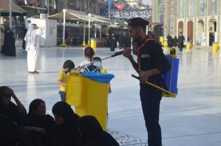 حيث وجّهت شعبةُ الطفولة والناشئة التابعة لقسم الشؤون الفكرية والثقافيّة في العتبة العبّاسية المقدّسة هؤلاء الفتية الذين يرتبطون بها للقيام بأعمال التنظيف في المناطق المحيطة بالصحن الشريف لأبي الفضل العبّاس(عليه السلام) التي تشهد حركةً للزائرين ومنطقة ما بين الحرمين الشريفين، كذلك القيام برشّ ماء الورد بقوارير خاصّة على الزائرين فضلاً عن إرواء الزائرين بالماء بطريقة إملاء قربة من الماء في إشارةٍ لقربة الساقي أبي الفضل العبّاس(عليه السلام)، ويستمرّ تقديم هذه الخدمات لغاية العاشر من محرّم الحرام.