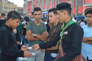 ضمن سلسلة نشاطاتها الخدميّة التي تُقدّمها جمعيّةُ كشّافة الكفيل لزائري عاشوراء المعزّين بذكرى شهادة الإمام الحسين وأخيه أبي الفضل العبّاس(عليهما السلام) قام أفراد الجمعية بأعمالٍ صغيرة بحجمها لكنّها كبيرة في مضمونها ودلالتها.