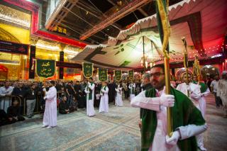 Matem alayının önünde de Kur’ân-i Kerîm ve matem bayrakları taşıyan bir grup yer aldı. Alay ardından Beynel-Haremeyn-i Şerîfeyn Meydanı’ndan geçerek Şehitlerin Efendisi Ebu Abdullah Hz. İmam Huseyn’in (Allah'ın selâmı üzerine olsun) Mukaddes Ziyaretgâhı’na doğru yürüdü. Ardından Hz. İmam Huseyn’in (Allah'ın selâmı üzerine olsun) Mukaddes Ziyaretgâhı’ndan içeri giren matem alayı Mukaddes Ziyaretgâh’ın ana avlusundan matem meclisi düzenledi. Ziyaretçilerin geniş çaplı katılımına sahne olan matem meclisinin ziyaretçilerde büyük etki bıraktığı gözlendi.