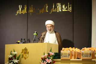 دراین مراسم و پس از تلاوت آیاتی چند ازکلام الله مجید، علامه سید احمد الصافی متولی شرعی آستان مقدس حضرت عباس علیه السلام در سخنانی گفت: امروز ما بواسطه یکی از دو میراثی که در روز قیامت ما را مورد حمایت قرار خواهند داد گرد هم آمده ایم، پیامبر اکرم صلی الله علیه و آله و سلم از آنجا که دلسوز امت بودند این دو میراث را به ما معرفی نموده اند و چنانچه در حدیث شریف (إنّي مخلّفٌ فيكم الثقلين كتاب الله وعترتي أهل بيتي) آمده، خواسته اند تا همواره این دو میراث را در کنار هم داشته باشیم.
