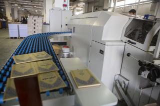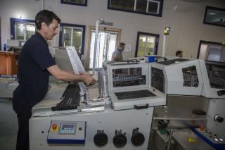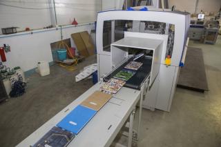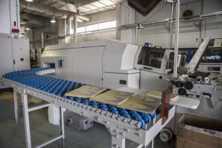 وبحسب ما بيّنه مديرُ المطبعة الأستاذ فراس الإبراهيمي: "من خلال هذا الخطّ الإنتاجيّ وبما يضمّ من أجهزة ومعدّاتٍ طباعيّة ألمانيّة المنشأ من شركة كولبس (kolbs) يُمكن تصنيع الغلاف (DA 260) بسرعة (40) دورةً في الدقيقة وطاقة إنتاجيّة تبلغ (2,400) غلاف في الساعة، وظيفتُه بسط مادّة الكرتون على القماش أو الجلد أو أيّ خامةٍ أخرى سواءً كانت طبيعيّة أو صناعيّة وتُستخدم حسب أوزانٍ وقياسات معتمدة وتكون صديقةً للبيئة وغير مؤذية صحّياً".
